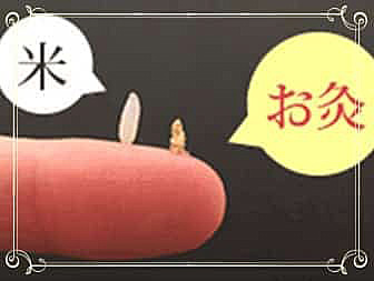 煙も少なく程よい温度のお灸を使用します。お灸はお米よりも小さいです。
