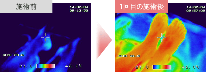 施術前は特に足元にひどい冷えがある状態でしたが、1回目の施術後から冷えの改善が見られます。