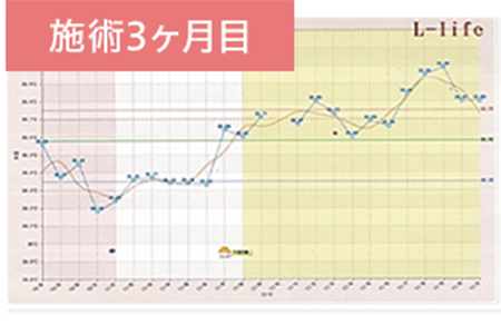 当院の推奨する3ヶ月施術を続けたのち、 ガタガタだった基礎体温も安定してきています。