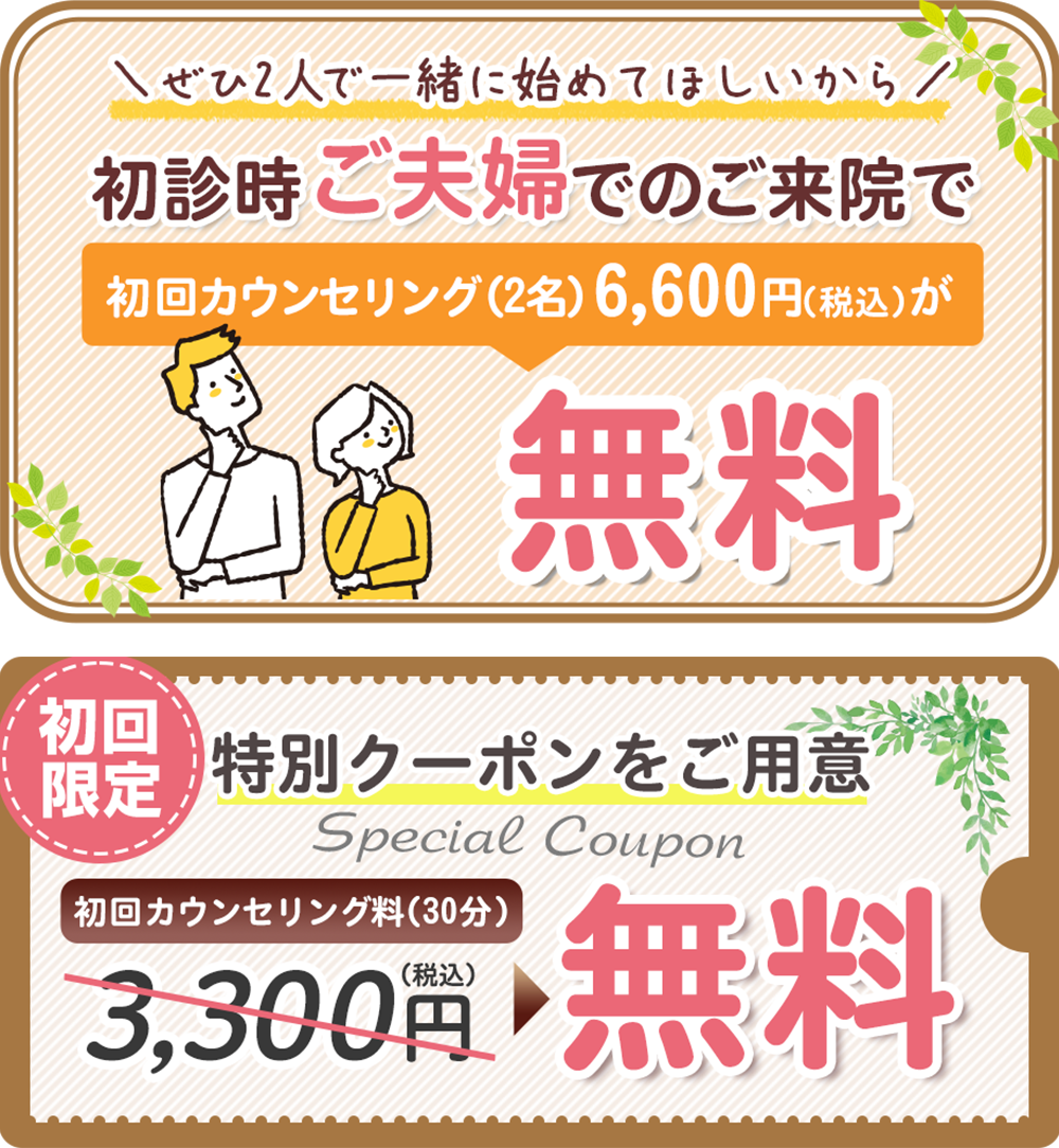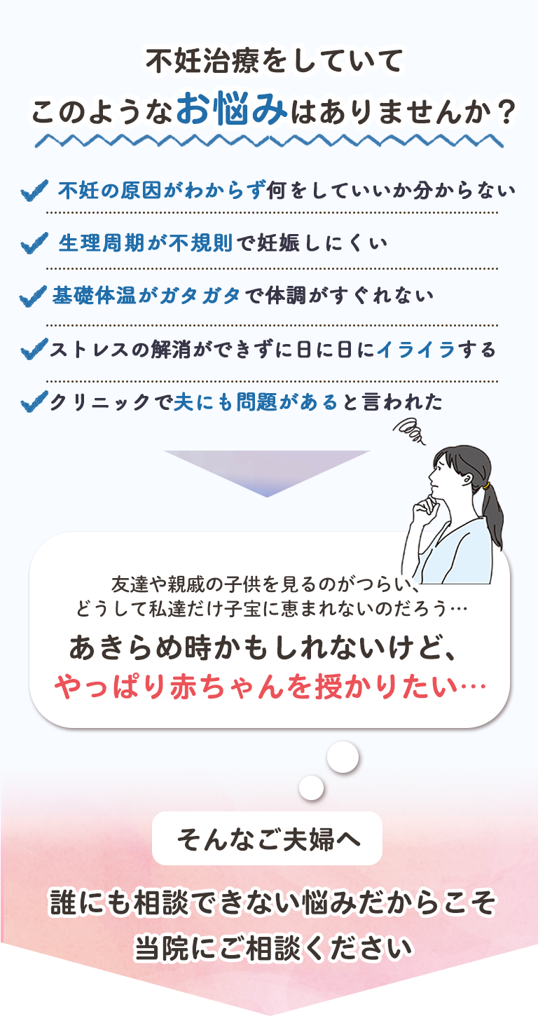 ご夫婦だけで悩まず、本八幡にある当院へご相談くだい。